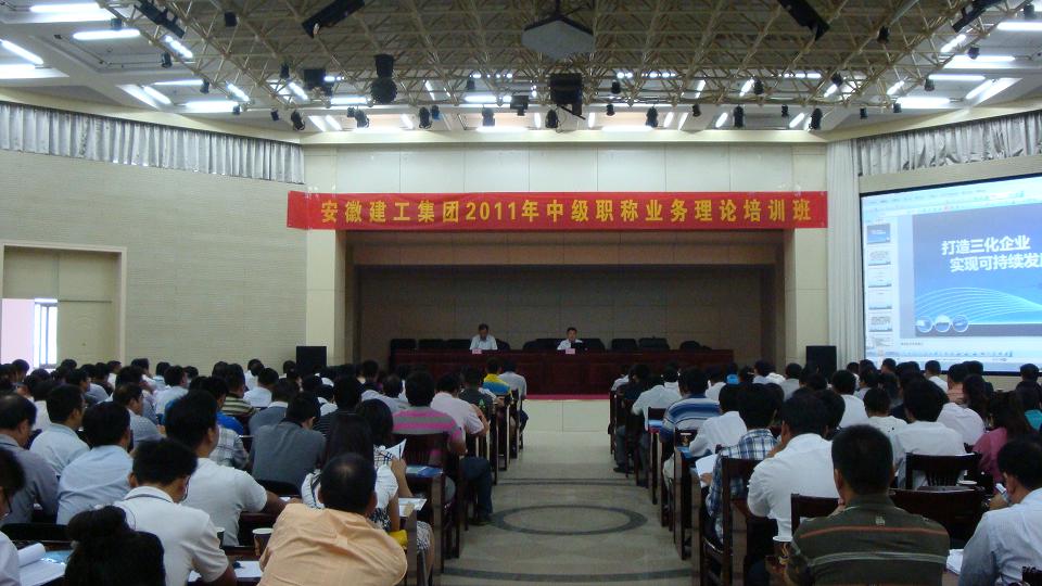 2011年9月16日—17日,集團公司2011年度中級職稱(chēng)業(yè)務(wù)理論培訓班在合肥舉行。集團系統申報2011年中級專(zhuān)業(yè)技術(shù)職稱(chēng)的共計256人參加了學(xué)習培訓。集團公司董事長(cháng)、黨委書(shū)記胡運成出席開(kāi)班儀式,副董事長(cháng)、總經(jīng)理趙時(shí)運出席結業(yè)儀式,并分別為學(xué)員授課,集團公司人力資源部主任李鵬飛主持培訓會(huì )議。