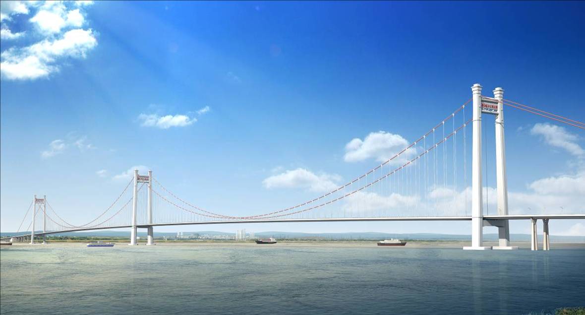 馬鞍山長(cháng)江公路大橋橋型新穎,技術(shù)含量高。左汊主橋采用2×1080米三塔兩跨懸索橋,主跨跨度突破千米,位列世界同類(lèi)橋型第一;主纜長(cháng)度突破3000米;鋼混疊合塔規模為世界第一;中塔還首次采用塔梁固結體系,抗風(fēng)吹浪打能力強,這也是世界上的創(chuàng )新。右汊主橋采用2×260米三塔斜拉橋,橋塔為橢圓拱型,為國內首座拱型塔三塔斜拉橋。大橋指揮部還通過(guò)動(dòng)畫(huà)的方式,生動(dòng)形象的演示了長(cháng)江大橋施工的關(guān)鍵步驟和過(guò)程方法。