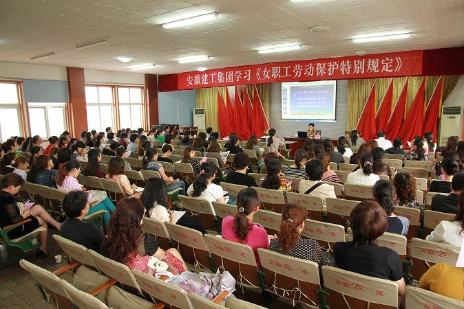 5月14日下午,安徽建工集團工會(huì )邀請省總工會(huì )女工部部長(cháng)夏建華就新頒布的《女職工勞動(dòng)保護特別規定》作專(zhuān)題講座,集團公司所屬各單位工會(huì )主席、女職委主任以及基層分公司工會(huì )女職工干部等160多人參加了培訓。講座由集團公司工會(huì )女職委主任胡愛(ài)紅主持。