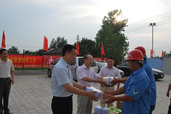 7月17日,安徽建工集團公司董事長(cháng)、黨委書(shū)記趙時(shí)運,在副董事長(cháng)、黨委副書(shū)記李長(cháng)斌,紀委書(shū)記、工會(huì )主席牛曙東等同志的陪同下,到省路橋公司合肥市G206公路改建工程項目部,深入工地,看望慰問(wèn)施工一線(xiàn)的職工,了解工程進(jìn)展情況,征詢(xún)廣大一線(xiàn)職工的意見(jiàn),并給他們送去了防暑降溫用品。