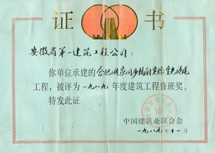 該工程竣工后經(jīng)檢查驗收,評為優(yōu)良工程,經(jīng)安徽省建設廳批準評定為安徽省施工優(yōu)質(zhì)工程,并榮獲1989年度國家級優(yōu)質(zhì)工程“魯班獎”。