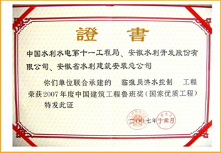 臨淮崗洪水控制工程--魯班獎