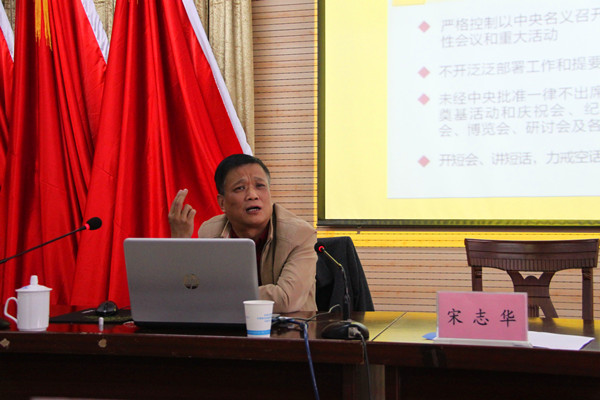講座中,宋志華書(shū)記從中央八項規定談起,用動(dòng)漫的形式詮釋了《廉潔自律準則》和《紀律處分條例》,全面深刻地闡述了黨風(fēng)廉政教育的意義,明確了當前黨風(fēng)廉政建設的新形勢和新要求,運用豐富的案例和翔實(shí)的數據,為全體參學(xué)人員上了生動(dòng)的一課。宋書(shū)記指出,推進(jìn)國有企業(yè)從嚴治黨尤為緊迫。他要求,大家一定要與中央保持一致,堅持思想建黨和制度建黨緊密結合,堅持從嚴管理黨員干部,堅持深入改進(jìn)作風(fēng),重品行、講黨性,講規矩、守紀律,要始終筑牢拒腐防變的思想道德防線(xiàn),切實(shí)踐行“三嚴三實(shí)”,爭當“忠誠、干凈、擔當”的黨員干部。