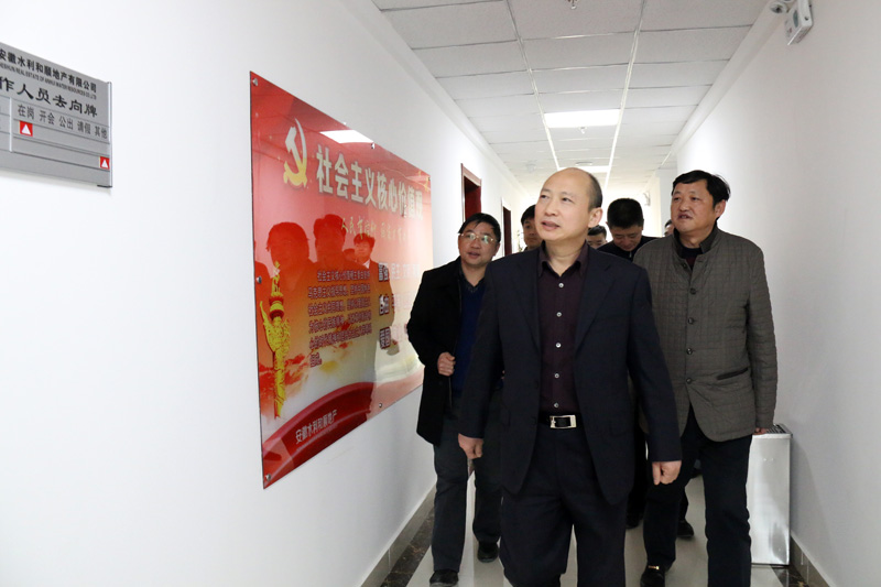 314日下午,集團公司黨委書(shū)記、董事長(cháng)趙時(shí)運到安徽水利和順地產(chǎn)調研指導工作。集團公司黨委委員、副總經(jīng)理霍向東,安徽水利黨委書(shū)記、總經(jīng)理張曉林,安徽水利副總經(jīng)理趙作平,安建地產(chǎn)副總經(jīng)理王成民以及集團公司辦公室副主任劉春雷等陪同調研。