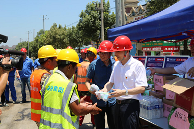 高溫橙色預警,最高氣溫超39°C!今年暑期,高溫熱浪席卷安徽大地。戰高溫,送清涼體現的不僅是安徽路橋集團人不怕苦不怕累艱苦卓絕精神,還有公司對一線(xiàn)員工的深深掛念。717日開(kāi)始,公司領(lǐng)導分別奔赴市政、廣德、蕪黃等項目一線(xiàn)開(kāi)展戰高溫,送清涼慰問(wèn)活動(dòng),為堅守一線(xiàn)的職工送來(lái)公司的“清涼”關(guān)懷和問(wèn)候。
