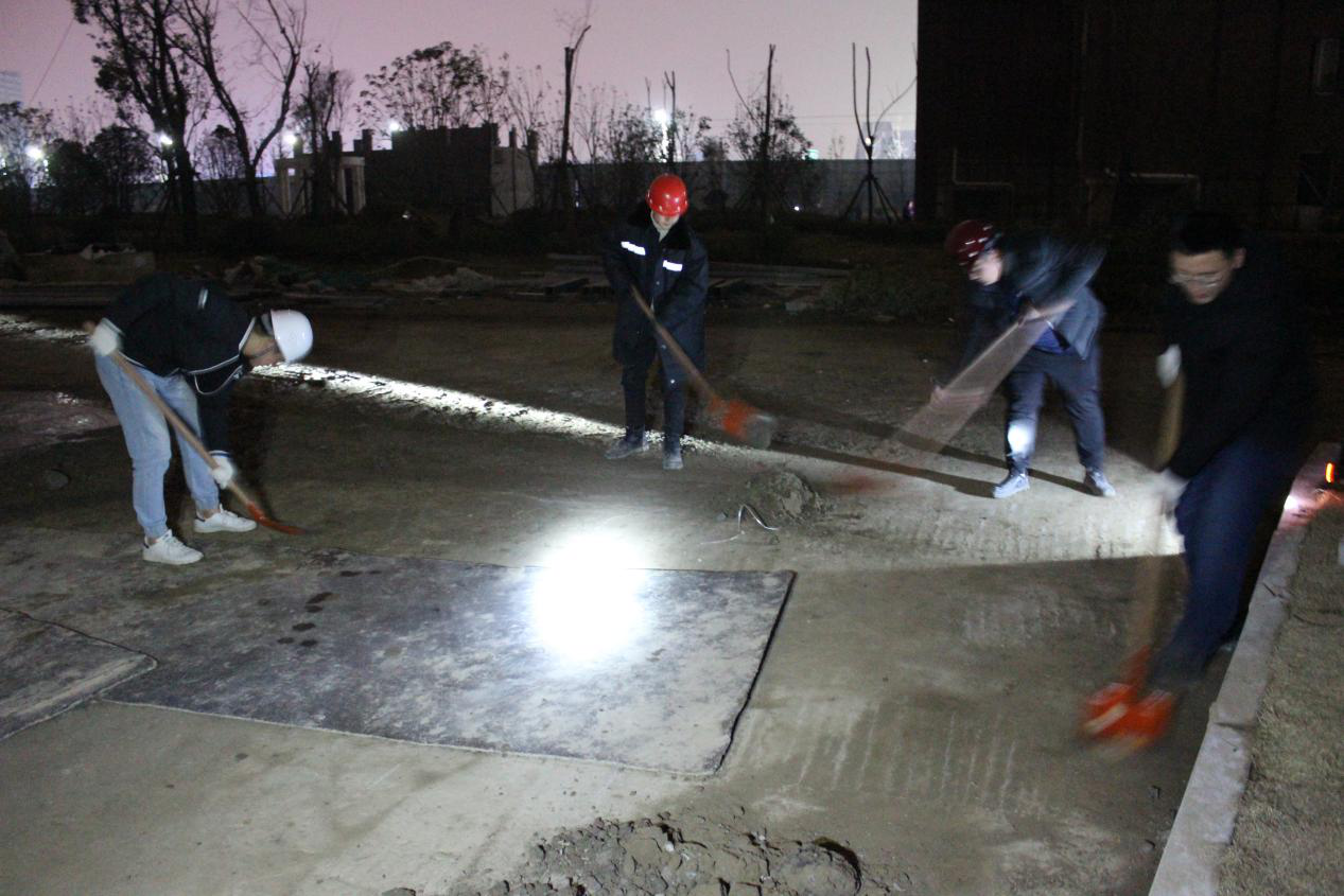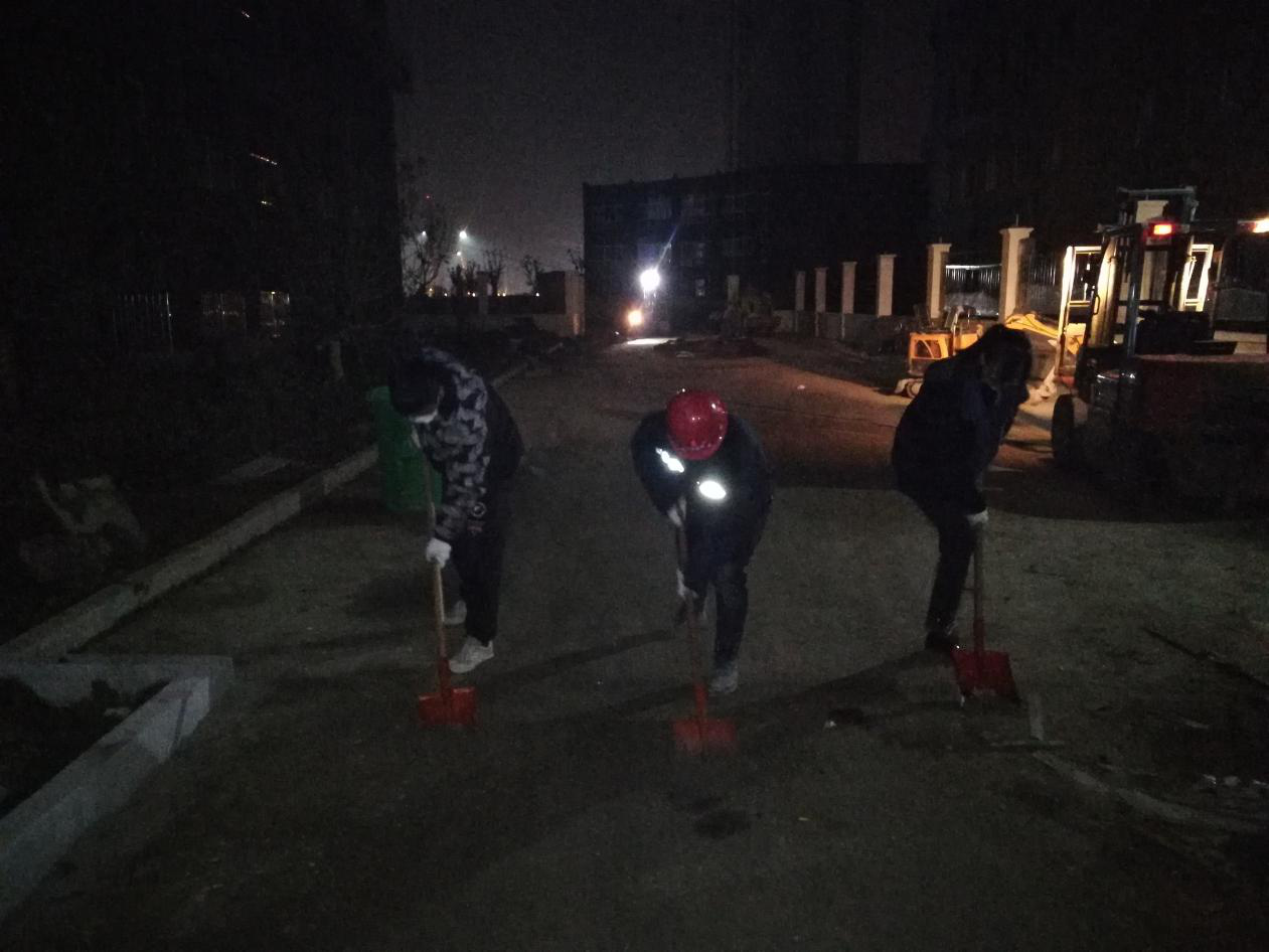 由于受到18年年末第一場(chǎng)雪的“洗禮”,積雪融化,導致項目內的淤泥隨處可見(jiàn),影響后期的施工進(jìn)度。為了實(shí)現白天夜晚交叉作業(yè),晚上六點(diǎn),阜陽(yáng)公司黨支部書(shū)記、總經(jīng)理周鑫帶領(lǐng)全體黨員深入到泥土最多,工作難度較大的區域開(kāi)展路面大清潔,并要求黨員亮明身份,積極發(fā)揮好先鋒模范作用。