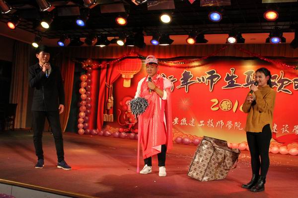 12月30日晚,安徽建工技師學(xué)院2016年迎新年師生聯(lián)歡晚會(huì )在學(xué)校禮堂隆重舉行。校長(cháng)張衛東、黨委書(shū)記錢(qián)森林、安徽建工建筑材料有限公司副總經(jīng)理徐友修、工會(huì )主席韓振遠,安徽建工技師學(xué)院副校長(cháng)任建設、周元清、呂良玉,紀委書(shū)記、工會(huì )主席龔維加與各處室、系部負責同志和廣大師生員工、部分離退休老同志參加了聯(lián)歡。