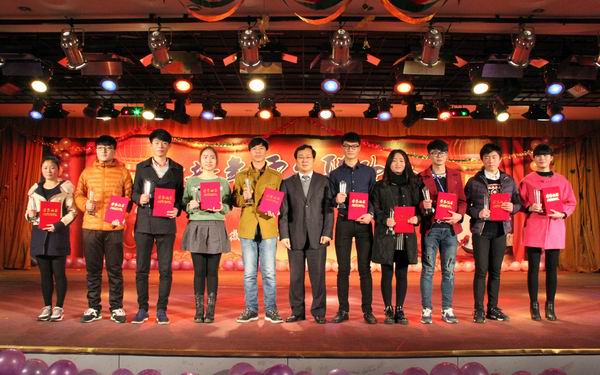 任建設副校長(cháng)給獲得“校園十佳技能明星”的同學(xué)頒獎