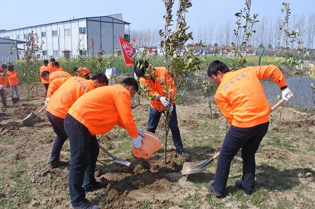 春回大地萬(wàn)物蘇,植樹(shù)添綠正當時(shí)。為踐行環(huán)保理念,項目部團支部于3月21日組織了植樹(shù)活動(dòng)。大家統一著(zhù)裝,佩戴志愿者徽章,高揚“建工青年志愿者服務(wù)隊”隊旗,在拌和站及項目部附近的空地上種植了近500棵樹(shù)苗?;顒?dòng)中,志愿者們積極行動(dòng),干得熱火朝天,大家三五人一組,揮鍬鏟土,扶苗填坑,踏土夯苗,認真完成每一道工序??粗?zhù)一株株“青年志愿樹(shù)”成功栽種,大家都露出了會(huì )心的笑容,項目部也在喜添新綠后變得生機盎然。