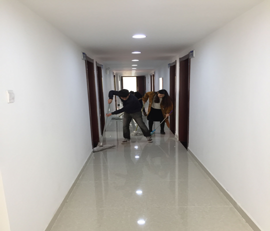 16名青年志愿者一早就來(lái)到新辦公樓下集合,領(lǐng)取清掃工具后便開(kāi)始抓緊時(shí)間打掃衛生。擦窗戶(hù),掃地,拖地,洗拖把,分工勞動(dòng),大家配合默契,效率倍增,一個(gè)上午的時(shí)間就將新辦公樓打掃一新。勞動(dòng)結束,看著(zhù)干凈整潔的新辦公室,微風(fēng)吹過(guò),窗明幾凈,團員青年們心中涌起滿(mǎn)滿(mǎn)的成就感。