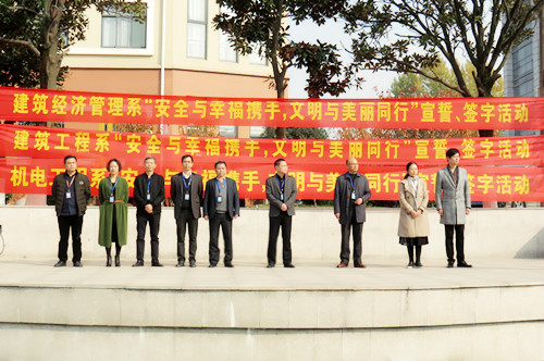 為保障學(xué)院學(xué)生身心健康,培養學(xué)生良好品行,有效預防青少年犯罪,對青少年的不良行為及時(shí)進(jìn)行預防和矯治,建筑經(jīng)濟管理系、建筑工程系、機電工程系與11月28日中午12:30分聯(lián)合組織學(xué)生開(kāi)展了以“安全與幸福攜手,文明與美麗同行”為主題的宣誓、簽名活動(dòng)。副院長(cháng)任建設、呂良玉、德育工作部蘇曉紅主任、團委書(shū)記陳卓、三系主任、書(shū)記及全體學(xué)生管理人員參加了此次活動(dòng)。