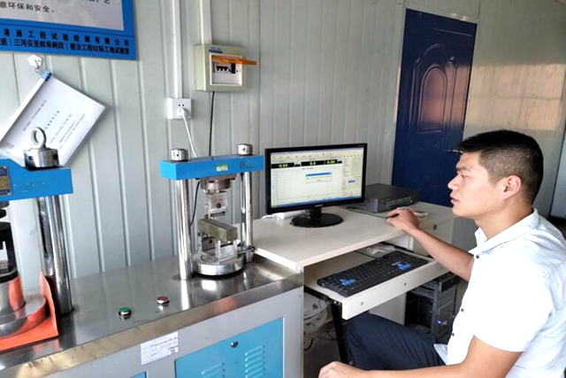 在S332安慶至望江改建工程項目進(jìn)行水泥混凝土施工時(shí),每天天色蒙蒙亮,就有一個(gè)人出現在攪拌站,調整當天施工配合比,他就是試驗員趙文。趙文每天要堅持做不下二十組混凝土試塊,一組試塊近五十斤,這只是他工作的一部分,為了檢測每個(gè)環(huán)節的材料質(zhì)量是否合格,他還要對材料進(jìn)行取樣、送檢?!拔倚枰WC每個(gè)進(jìn)場(chǎng)材料的品質(zhì),不合格的產(chǎn)品絕不能用于施工,否則就會(huì )留下隱患?!壁w文說(shuō)。在最緊張的施工階段,他沒(méi)有休息過(guò)一天,常常與試驗組的同事加班至深夜?!霸陧椖坎?,所有人都在拼命工作,試驗這個(gè)環(huán)節也不能‘拖后腿’!”就是這樣一種精神,支撐著(zhù)趙文在試驗領(lǐng)域一往無(wú)前。