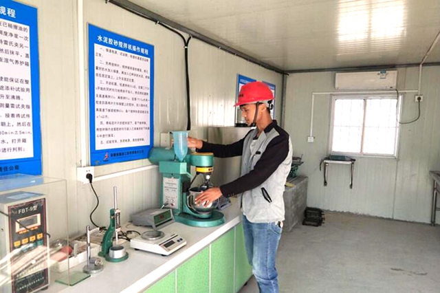 “任重而道遠”是S210和城段改建工程項目部試驗室主任楊得元寫(xiě)在自己記事本扉頁(yè)上的五個(gè)大字,也是他時(shí)常告誡身邊試驗員的一句話(huà)。他深知,試驗是保障工程質(zhì)量的重要環(huán)節,在項目建設過(guò)程中有著(zhù)舉足輕重的作用。楊得元每天除了檢查試驗工作的完成情況,還經(jīng)常深入施工現場(chǎng),從水泥、砂石、鋼筋等原料是否合格,到大橋水下樁基施工鉆孔開(kāi)挖、混凝土澆注工藝是否達標,從最初的原料到最終的成品,他是每個(gè)環(huán)節質(zhì)量的“把關(guān)人”?!霸囼炛挥泻细衽c不合格,沒(méi)有差不多?!睏畹迷f(shuō),盡管工程試驗條件相對艱苦,各個(gè)環(huán)節瑣碎單調,但工程建設容不得半點(diǎn)隱患,這是試驗人員的責任,也是榮耀。