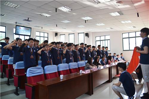 隨后,汽車(chē)與機電技術(shù)系書(shū)記助理蔡克老師宣讀了《關(guān)于同意成立“紅馬甲”青年志愿者服務(wù)隊的批復》。德育工作部副主任、團委書(shū)記周曉瑛同志為“紅馬甲”青年志愿者服務(wù)隊授旗?!凹t馬甲”青年志愿者服務(wù)隊副隊長(cháng)陳亞楠老師宣讀了《“紅馬甲”青年志愿者服務(wù)隊章程》。18機電一體化班的李成同學(xué)代表青年志愿者發(fā)言,并帶領(lǐng)全體青年志愿者面對隊旗進(jìn)行了宣誓。