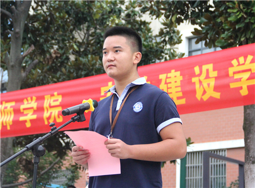 來(lái)自工程系楊熙元同學(xué)代表全院學(xué)生做了國旗下的演講,他以“學(xué)好技能,報效祖國”為題,號召同學(xué)們腳踏實(shí)地,認真上好開(kāi)學(xué)第一課;一往無(wú)前,追逐心中的夢(mèng)想,成為能文能武的能工巧匠,牢固樹(shù)立技能成才的信心和技能報國的決心。