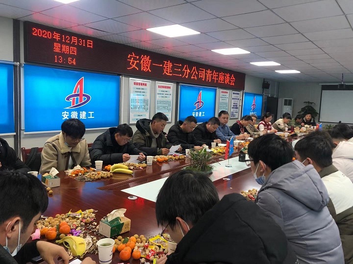 2020年12月31日,安徽一建三分公司在錦繡龍川府EF地塊項目部會(huì )議室召開(kāi)青年座談會(huì )。分公司領(lǐng)導、機關(guān)及所屬項目部青年職工代表近60人參加座談。