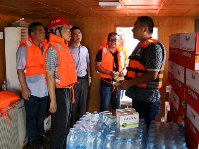 王厚良一行登上正在青弋江河道中進(jìn)行河道清淤的“蛟龍號”,查看施工作業(yè)進(jìn)度,指導安全度汛工作。他與船員們親切交談,詳細了解船舶施工中遇到的難點(diǎn)問(wèn)題,指導船員們在施工過(guò)程中應該注意的安全事項,囑咐安徽交航公司要做好船員的后勤保障工作。上岸后一行人又驅車(chē)趕往南陵縣四七圩倉溪段堤壩抗洪搶險第一線(xiàn),乘坐沖鋒舟,登上正在潰堤處進(jìn)行施工作業(yè)的抓斗船。王總一行詳細查看了船上作業(yè)設備,詢(xún)問(wèn)了施工進(jìn)度,囑咐大家在艱苦的水上作業(yè)同時(shí)要注意自身安全。王總還與在船上值守的南陵縣水務(wù)局負責人進(jìn)行了親切交談,對方再次感謝安徽建工、安徽交航對當地政府抗洪救災給予的大力支持。安徽交航職工紛紛表示將不辱使命,繼續發(fā)揚不怕苦不怕累的拼搏精神,爭取盡早完工,讓災民們早日返回家園。