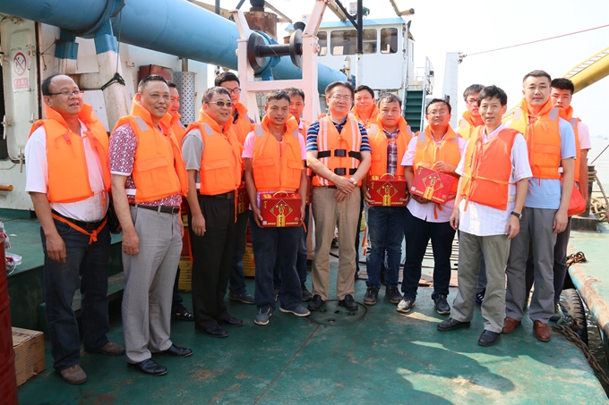 時(shí)值“三伏”盛夏、酷暑難耐,7月27日上午建工集團總經(jīng)理劉家靜、工會(huì )主席徐曉光等一行頂著(zhù)炎炎烈日、不辭辛勞,來(lái)到正在安徽交航青弋江河道中進(jìn)行河道清淤的“蛟龍號”挖泥船上,為正在船上施工作業(yè)的船員們帶來(lái)關(guān)懷關(guān)愛(ài)、送來(lái)防暑降溫物品。集團公司總經(jīng)理助理、工程管理部主任童宗勝,集團工會(huì )副主席吳曉伍,安徽交航董事長(cháng)、黨委書(shū)記、總經(jīng)理李世龍等陪同慰問(wèn)。