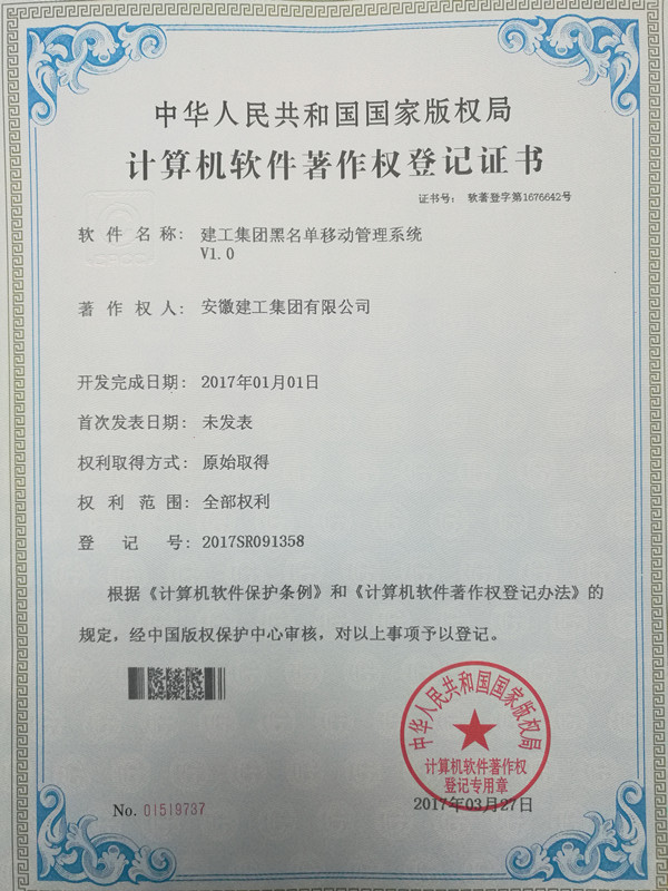 近日,由集團信息管理部自主開(kāi)發(fā)的《建工集團黑名單管理系統V1.0》、《建工集團黑名單移動(dòng)管理系統V1.0》獲得計算機軟件著(zhù)作權登記證書(shū)(編號:軟著(zhù)登字第1676370號、軟著(zhù)登字第1676642號),截至目前,集團信息管理部已經(jīng)獲得5項軟件著(zhù)作權證書(shū)。