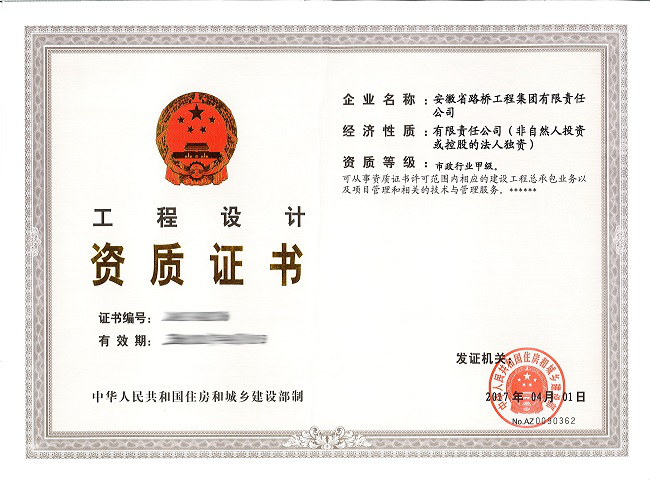 安徽路橋集團成功獲得市政公用工程施工總承包特級資質(zhì)及市政行業(yè)甲級設計資質(zhì)