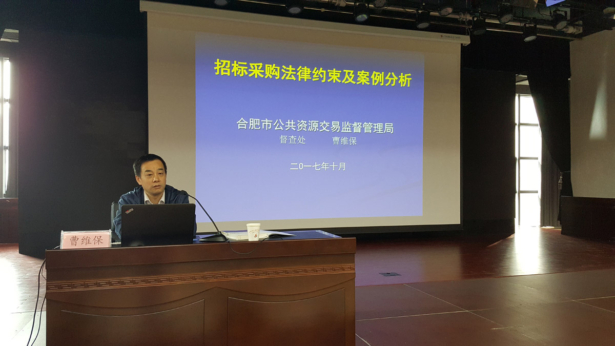 22日全天的培訓,邀請到了合肥市公共資源交易監督管理局督察處曹維保處長(cháng)進(jìn)行授課。曹處長(cháng)從招標管理工作的法規制度、招標過(guò)程規范要求及招投標實(shí)施過(guò)程中的案例分析、新形勢下招投標采購工作熱點(diǎn)問(wèn)題疑難解析、招投標采購管理與監督管理難點(diǎn)等,結合自身工作管理經(jīng)驗,給參培人員上了一堂操作層面的實(shí)戰課。