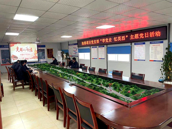4月8日,池祁項目黨支部全體黨員在項目部會(huì )議室開(kāi)展“學(xué)黨史 憶英烈”黨史主題黨課,通過(guò)觀(guān)看革命教育專(zhuān)題片《光輝的歷程》學(xué)習革命烈士的大無(wú)畏精神,勉勵支部以更加昂揚的斗志投入生產(chǎn)。