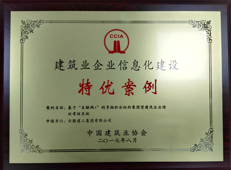 2017年11月26日至27日,中國建筑業(yè)協(xié)會(huì )全國建筑業(yè)企業(yè)信用體系建設與創(chuàng )新發(fā)展經(jīng)驗交流會(huì )在南京舉行。中國建筑業(yè)協(xié)會(huì )會(huì )長(cháng)王鐵宏等協(xié)會(huì )領(lǐng)導出席會(huì )議,會(huì )議由副秘書(shū)長(cháng)吳濤主持。建工集團榮獲“中國建筑業(yè)競爭力200強企業(yè)”,集團申報的《基于“互聯(lián)網(wǎng)+”的多組織分權的集團型建筑企業(yè)績(jì)效考核系統》案例榮獲“建筑業(yè)企業(yè)信息化建設特優(yōu)案例”,在會(huì )上接受了中國建筑業(yè)協(xié)會(huì )的授牌及證書(shū)。這是繼2016年榮獲第二屆全國建筑業(yè)企業(yè)信息化建設特優(yōu)案例之后,集團再次獲此殊榮。