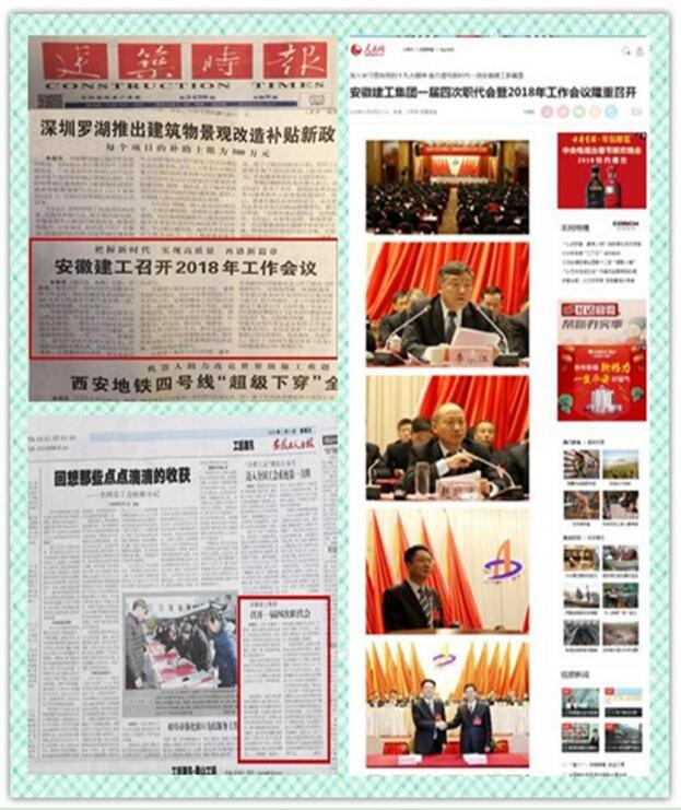 自1月31日集團公司一屆四次職代會(huì )暨2018年工作會(huì )議勝利閉幕以來(lái),人民網(wǎng)安徽頻道、建筑時(shí)報、安徽工人日報等新聞媒體先后刊發(fā)報道,為集團公司2017年取得的成績(jì)點(diǎn)贊,新華網(wǎng)、鳳凰網(wǎng)、網(wǎng)易、建筑新網(wǎng)等網(wǎng)絡(luò )媒體紛紛轉發(fā),引起社會(huì )各界強烈反響。