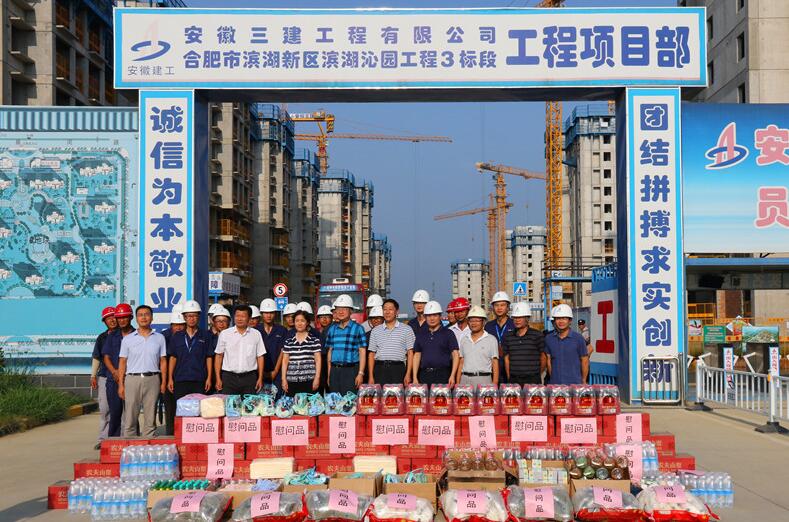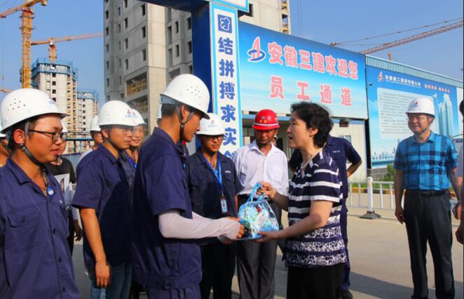 8月7日下午,省住建廳黨組書(shū)記、廳長(cháng)趙馨群,副廳長(cháng)吳桂和一行在集團公司總經(jīng)理、黨委副書(shū)記劉家靜,安徽三建公司董事長(cháng)、黨委書(shū)記左登宏等陪同下,來(lái)到安徽三建公司濱湖沁園產(chǎn)業(yè)化項目,看望和慰問(wèn)奮戰在施工一線(xiàn)干部職工,調研集團公司夏季防暑降溫工作,實(shí)地察看了施工現場(chǎng)并送來(lái)防暑降溫用品。