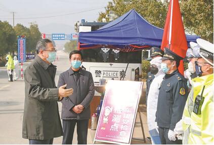 上午,李錦斌驅車(chē)2個(gè)多小時(shí),來(lái)到毗鄰湖北省黃岡市黃梅縣的105國道檢測站皖鄂省際檢測點(diǎn),實(shí)地檢查交通管制、體溫檢測、應急處置等情況。他指出,實(shí)行交通管制是“防輸入”的第一道關(guān)口,要從嚴執行國家和省里相關(guān)規定,統籌做好疫情防控和交通運輸保障工作,既嚴格檢查又文明服務(wù),確保做到“一斷三不斷”,即堅決阻斷病毒傳播渠道,堅決保障公路交通網(wǎng)絡(luò )不斷、應急運輸綠色通道不斷、必要的群眾生產(chǎn)生活物資的運輸通道不斷。左壩鄉碧嶺村地處皖鄂交界,是湖北省黃梅縣進(jìn)入我省宿松縣的第一村。得知全村黨員自告奮勇參加疫情防控,李錦斌十分欣慰,他說(shuō),疫情防控是檢驗黨員初心使命的考場(chǎng),要全面動(dòng)員起來(lái)、全體行動(dòng)起來(lái),發(fā)揮好基層黨組織戰斗堡壘作用和黨員先鋒模范作用,讓黨旗在戰“疫”一線(xiàn)高高飄揚。經(jīng)過(guò)宿松縣城玉龍社區,李錦斌臨時(shí)停車(chē),來(lái)到高家大屋值守點(diǎn),向工作人員了解往來(lái)人員登記、包保責任落實(shí)等情況,并向他們表示親切慰問(wèn)。他強調,減少人員聚集是阻斷病毒傳播的重要舉措,要加強宣傳引導,倡導文明新風(fēng),教育引導群眾不擺席、不聚餐,盡量少串門(mén)、少走動(dòng),嚴防聚集性疫情發(fā)生。