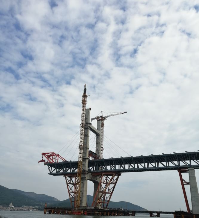 10月25日,股份公司副總經(jīng)理童宗勝、孫學(xué)軍率隊觀(guān)摩了中鐵大橋局承建的平潭海峽公鐵大橋項目(福平鐵路FPZQ-3標)。中鐵大橋局副總工程師兼項目部總工程師王東輝,三分部項目經(jīng)理姚華、項目書(shū)記劉運杰、項目總工皮軍云等接待了觀(guān)摩團。