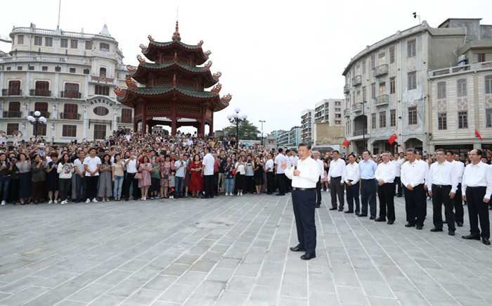日下午來(lái)到廣東省汕頭市小公園開(kāi)埠區,走進(jìn)開(kāi)埠文化陳列館、僑批文物館,了解汕頭開(kāi)埠歷史、設立經(jīng)濟特區以來(lái)的建設發(fā)展情況,和潮汕僑胞心系家國故土、支持祖國和家鄉建設的歷史。隨后,習近平步行察看開(kāi)埠區街區人文歷史風(fēng)貌,同市民群眾親切交流。