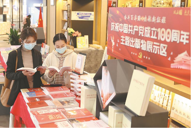 3月15日,讀者在新華書(shū)店(安徽圖書(shū)城店)選購黨史學(xué)習教育讀物。連日來(lái),全省各市縣新華書(shū)店和城市閱讀空間共150家門(mén)店最醒目的位置設置了黨史學(xué)習教育系列讀物展示專(zhuān)區,讀物持續熱銷(xiāo),掀起黨史學(xué)習教育熱潮。