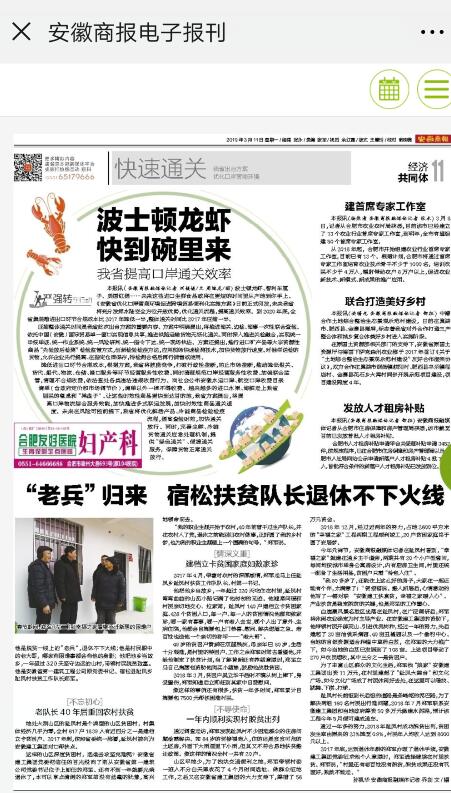 3月8日,宿松縣召開(kāi)縣摘帽第三方評估座談會(huì ),我集團派駐趾鳳村第一書(shū)記、扶貧工作隊長(cháng)鄭軍作為5位參會(huì )代表之一,受邀在會(huì )上發(fā)言。他以老同志扶貧為主題的發(fā)言受到了與會(huì )人員的廣泛好評,安徽商報由此于3月11日專(zhuān)門(mén)刊登了題為《“老兵”歸來(lái),宿松扶貧隊長(cháng)退休不下火線(xiàn)》的報道文章,引起較大反響。