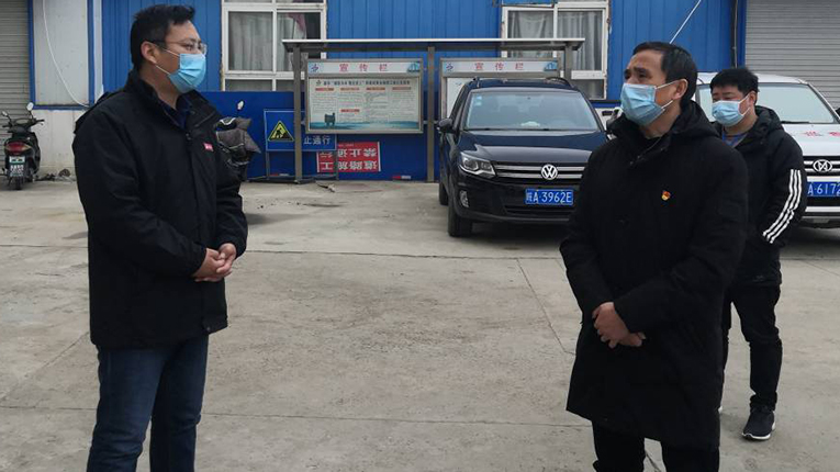2月14日上午,固鎮縣住建局局長(cháng)陳大鵬赴安建建設公司第四工管部檢查指導疫情防控工作,第四工管部負責人盧朋陪同。