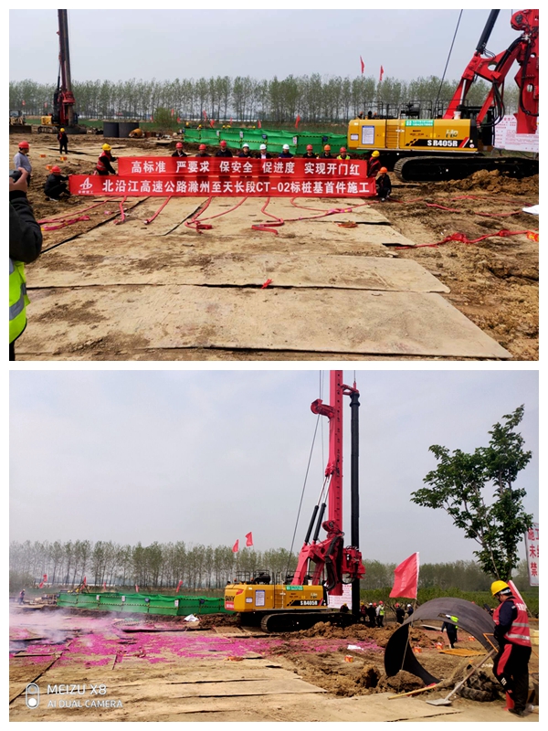 4月10號,在經(jīng)過(guò)項目部的各項努力,滁天高速CT-02標首件樁基工程正式啟動(dòng)。標志著(zhù)項目部在2020年施工生產(chǎn)中邁出了堅