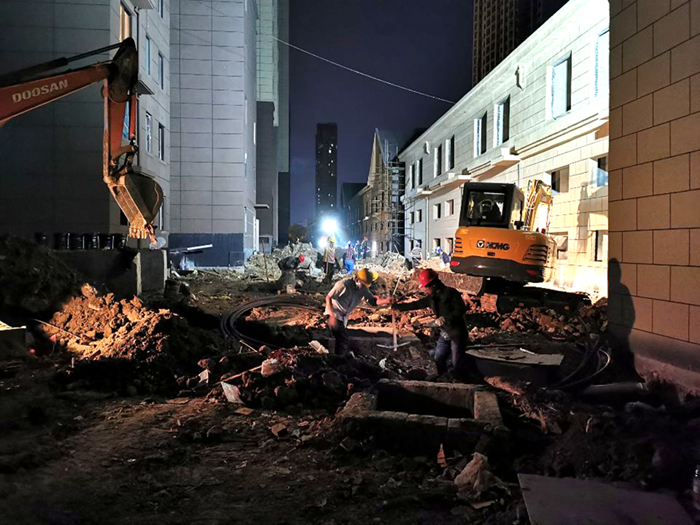為保障六月底順利交房,工程管理部及楓林源筑項目組織力量搶節點(diǎn),24小時(shí)三班倒,7#樓北側及12#樓北側道路澆筑前鋪設所有管網(wǎng),爭取四月底南區作業(yè)面基本完工。同步積極與各驗收主管部門(mén)溝通聯(lián)系,邀請預驗。