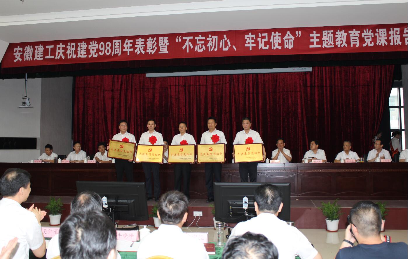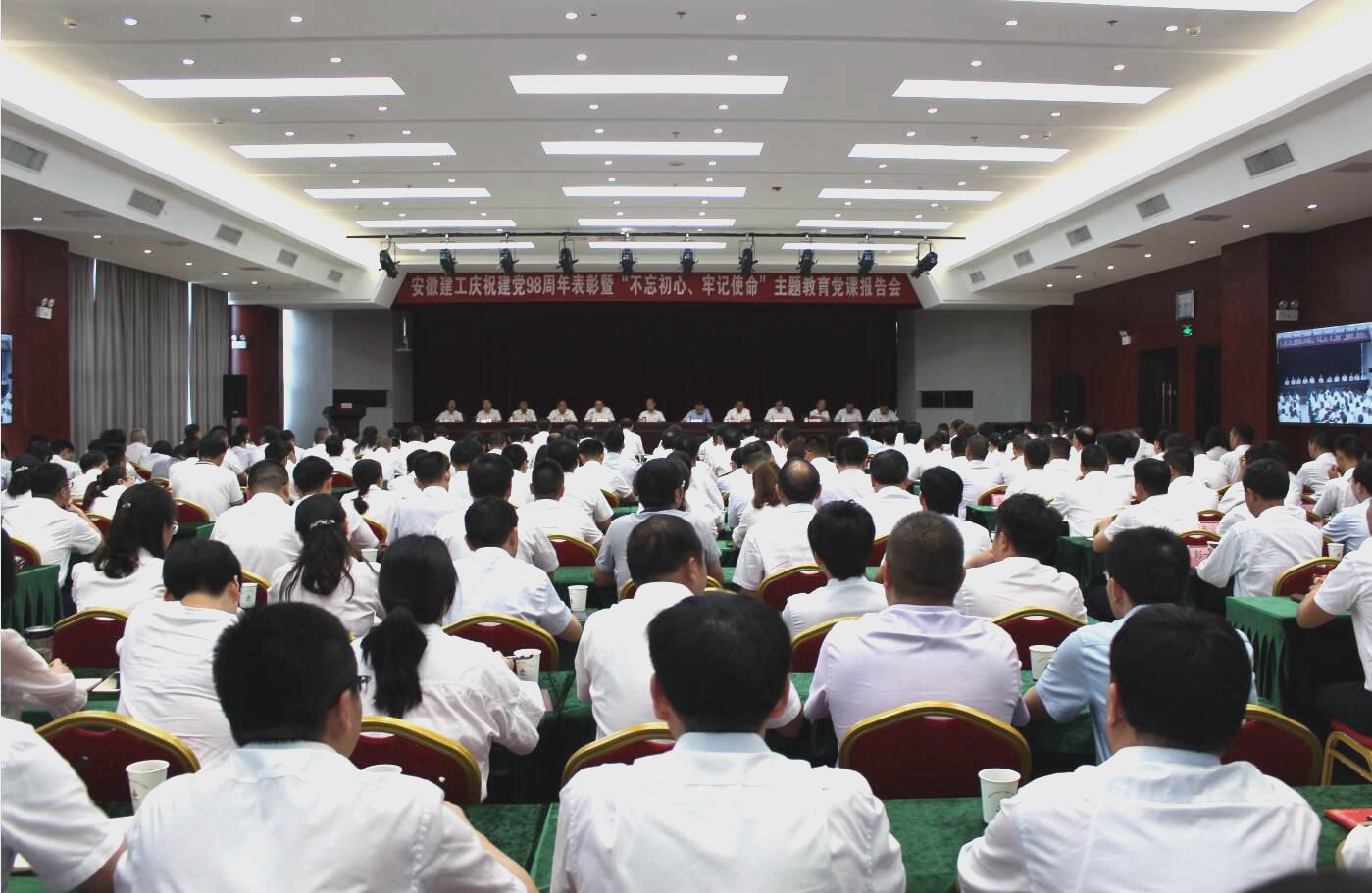 為慶祝建黨98周年,深入開(kāi)展“不忘初心、牢記使命”主題教育,7月1日下午,安徽建工控股黨委慶祝建黨98周年表彰暨“不忘初心、牢記使命”主題教育黨課報告會(huì )在安建大廈三樓會(huì )議室舉行。會(huì )議堅持以習近平新時(shí)代中國特色社會(huì )主義思想為指導,號召集團各級黨組織和全體黨員更加緊密地團結在以習近平同志為核心的黨中央周?chē)?,不忘初心、牢記使命,團結一心、拼搏奮斗,堅持用高質(zhì)量黨建引領(lǐng)企業(yè)高質(zhì)量發(fā)展,為打造一流安徽建工、建設現代化五大發(fā)展美好安徽作出新的更大貢獻。