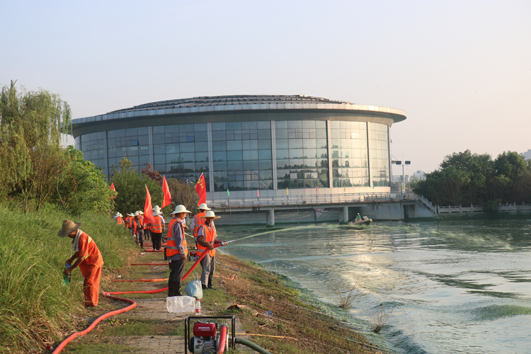 當天,一大早,70多名黨員、職工就感到巢湖環(huán)湖北路塘西河大橋邊,現場(chǎng)成立了三支黨員突擊隊,大家頭頂烈日,冒著(zhù)37攝氏度的高溫,投入到治理藍藻攻堅戰中。大家沿湖開(kāi)展集中作業(yè),連續抽取湖水投放殺藻劑或絮凝劑,再排放回湖中。一整天工作中, 在藍藻治理活動(dòng)中,廣大黨員、團員勇當先鋒,連續工作12小時(shí)。 大家的工作服干了又濕,濕了又干。十二公司青年黨員曾祥軍同志說(shuō):“八百里巢湖是合肥的名片,是合肥市寶貴的自然資源,能夠參與到巢湖藍藻治理中,做保衛環(huán)境的戰士,義不容辭”。