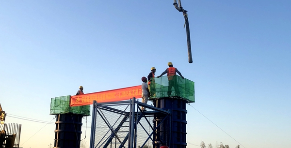 池河大橋作為項目控制性工程,橋梁全長(cháng)550米,原定計劃搭設漫水橋作為便橋。受7月份連續強降雨影響,池河水位全面上漲,無(wú)法進(jìn)行漫水橋施工,且河兩岸均為軟基,對樁基施工影響極大。項目及時(shí)調整思路,創(chuàng )造條件,調集路基隊伍搶修池河大橋段便道,從兩頭向中間推進(jìn),借助部分村村通公路,有效保障了施工機械和罐車(chē)通行。為確保鋼筋籠制作進(jìn)度,對樁徑和樁長(cháng)一致的部分優(yōu)先施工。截至10月10日,池河大橋施工已累計完成93%,目前已轉入橋梁承臺及墩柱施工階段。