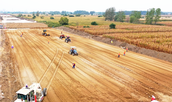 G329利辛繞城段新建工程項目計劃工期18個(gè)月,面對施工工期緊、協(xié)調關(guān)系復雜、施工組織難度大等問(wèn)題,項目部領(lǐng)導班子迅速調整,采用項目部協(xié)調例會(huì )和現場(chǎng)生產(chǎn)例會(huì )相互結合的創(chuàng )新模式,合理分配各工區人員隊伍及機械設備,通過(guò)建立健全各項規章制度,不斷強化內部管理。根據項目需要,充分推廣應用“四新”科技成果,采用新型化學(xué)泥漿護壁、混凝土裂縫控制、預應力技術(shù)、高性能混凝土等技術(shù)措施,為項目生產(chǎn)提供保障。與此同時(shí),沿線(xiàn)增設鋼筋加工場(chǎng),解決鋼筋籠制作和運輸問(wèn)題;河道內建立擋水圍堰并采用埋設深護筒的方法,保障橋梁樁基的順利成孔;路基施工、承臺開(kāi)挖、混凝土澆筑等層面,多單位相互協(xié)作,多工序交叉作業(yè),以科學(xué)的管理保證年度目標的順利實(shí)現。10月29日,K0+000-K2+600標段日進(jìn)土量約5000方,近20臺機械同時(shí)作業(yè),技術(shù)人員工區內來(lái)回穿梭,忙的不亦樂(lè )乎。掌握了工程施工特點(diǎn)和創(chuàng )新技術(shù)的G329項目員工,逐個(gè)攻克遇到的各種難題,不斷掀起促生產(chǎn)、促超產(chǎn)的施工浪潮。