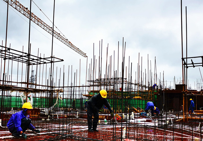 湛江力高項目冒雨綁扎鋼筋,搶工正當時(shí)