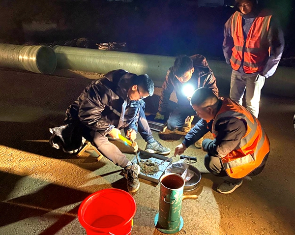 由于該項目施工區域位于交通干道,車(chē)輛、人員流動(dòng)量大,道路兩旁住房、廠(chǎng)房密布,大規模作業(yè)無(wú)法實(shí)施。針對種種困難和壓力,項目部精心謀劃,組織精干力量,分重點(diǎn)、分區域、分節點(diǎn),采用“插縫施工”思路,以點(diǎn)帶面,以面促片,順利完成路床交驗、路面水穩試驗段鋪筑、污水管道施工和全線(xiàn)舊路面板破除等節點(diǎn)任務(wù)。