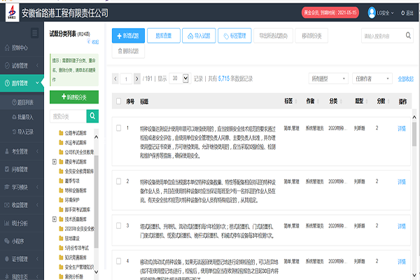 通過(guò)使用線(xiàn)上平臺,建立包含特種設備、環(huán)境保護、駐地建設、節后復工、疫情防控、崗前考試、全員安全教育等11類(lèi)、5715道試題的題庫,安全教育不再受時(shí)間和距離制約,近年來(lái)安全教育頻率大幅度提升。
