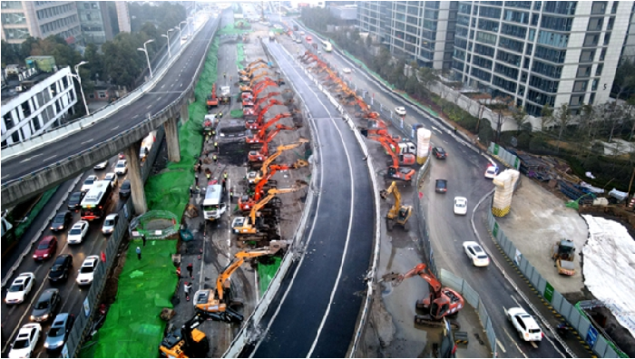 2月3日7時(shí),由安徽省公路橋梁工程有限公司承建的合肥市金寨路高架南向西至南二環(huán)左轉匝道開(kāi)始進(jìn)行拆除作業(yè)。30臺大型破碎機分布于匝道橋兩側同時(shí)進(jìn)行破碎,8臺霧炮機、7臺灑水車(chē)對施工區域持續噴灑降塵。僅用15個(gè)小時(shí)便完成了原計劃兩天的匝道拆除任務(wù),標志著(zhù)暢通二環(huán)(西南環(huán))一標段在全線(xiàn)率先進(jìn)入二階段施工作業(yè),為后續主體施工奠定了堅實(shí)基礎。