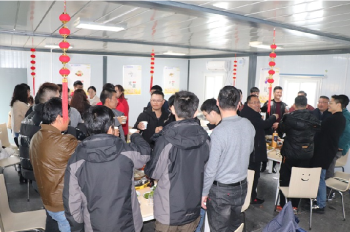 為確保留守職工和工人在工地上過(guò)一個(gè)溫暖年、幸福年,項目部在生活服務(wù)上做足了保障。還未到春節,項目部便已掛起了大紅燈籠,貼上了漂亮窗花,處處洋溢著(zhù)濃郁的喜慶和歡樂(lè ),年味兒十足!