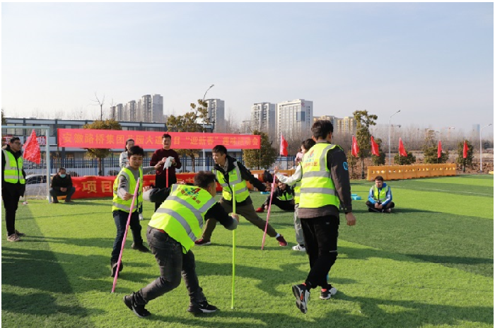 項目部還舉辦了“迎新春”趣味運動(dòng)會(huì ),讓留守員工在工地這個(gè)別樣年過(guò)得更加熱熱鬧鬧,紅紅火火。摸石過(guò)河、同心擊鼓、不倒森林、集體跳繩,每個(gè)項目既是智慧和體力的角逐,更是團隊協(xié)作能力的比拼。從比賽開(kāi)始,到結束,現場(chǎng)的歡聲笑語(yǔ)此起彼伏,加油助威聲不絕于耳,好不熱鬧。本次趣味體育比賽,培養項目員工競爭拼搏精神及團隊協(xié)作能力,提升項目凝聚力,號召項目全體員工在新年里精誠團結,步調一致,擰成一根繩,卯足一股勁,團結協(xié)作,合力攻堅,為項目年度任務(wù)目標的圓滿(mǎn)完成而共同努力奮斗。