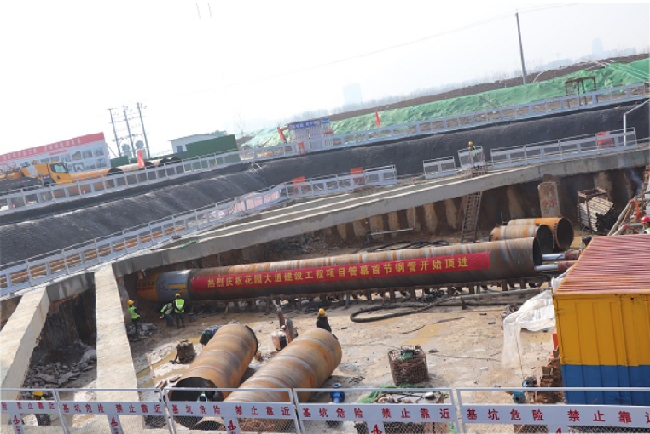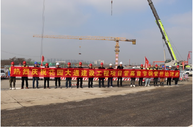 3月2日9時(shí)18分,安徽路橋集團花園大道(徽州大道-包河大道)建設工程隧道管幕首節鋼管開(kāi)始頂進(jìn)。