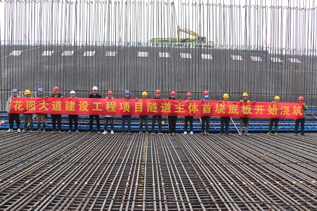 【人勤春來(lái)早 復工復產(chǎn)忙】路橋集團花園大道項目隧道主體首塊底板順利澆筑完成