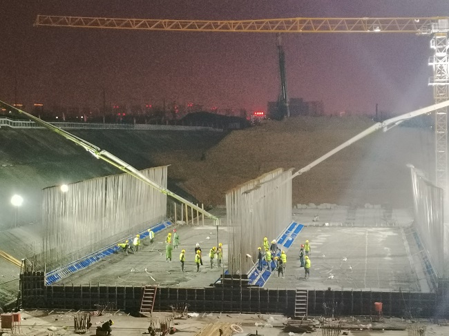 本次隧道主體首塊底板混凝土澆筑共計2200余方。3日早上6時(shí)許,項目部施工員、安全員、材料員、試驗員均已到位,作交底、查安全、收材料、調配比,澆筑前各項準備工作井然有序。澆筑過(guò)程中,項目施工員全程旁站,控制混凝土每層澆筑厚度,并確保每個(gè)結構部位振搗到位;試驗員對到場(chǎng)的每車(chē)混凝土均進(jìn)行坍落度試驗,嚴控混凝土質(zhì)量。